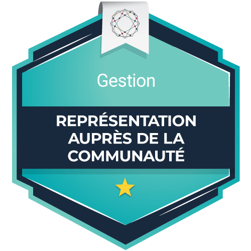 La personne qui détient ce badge démontre qu’elle est capable de représenter efficacement l’organisme auprès de la communauté.
